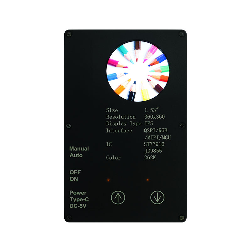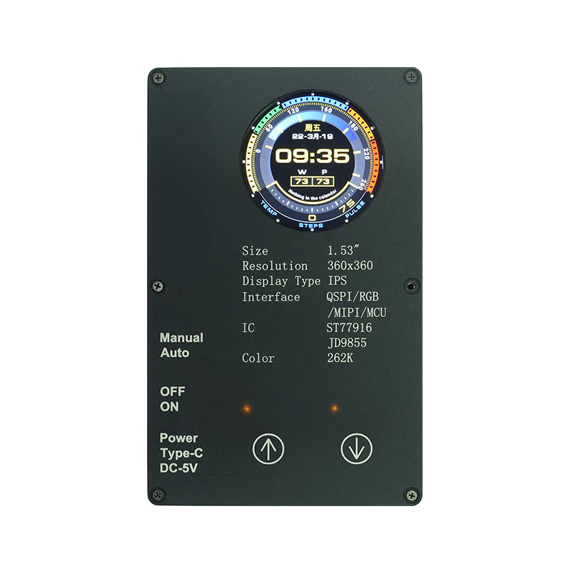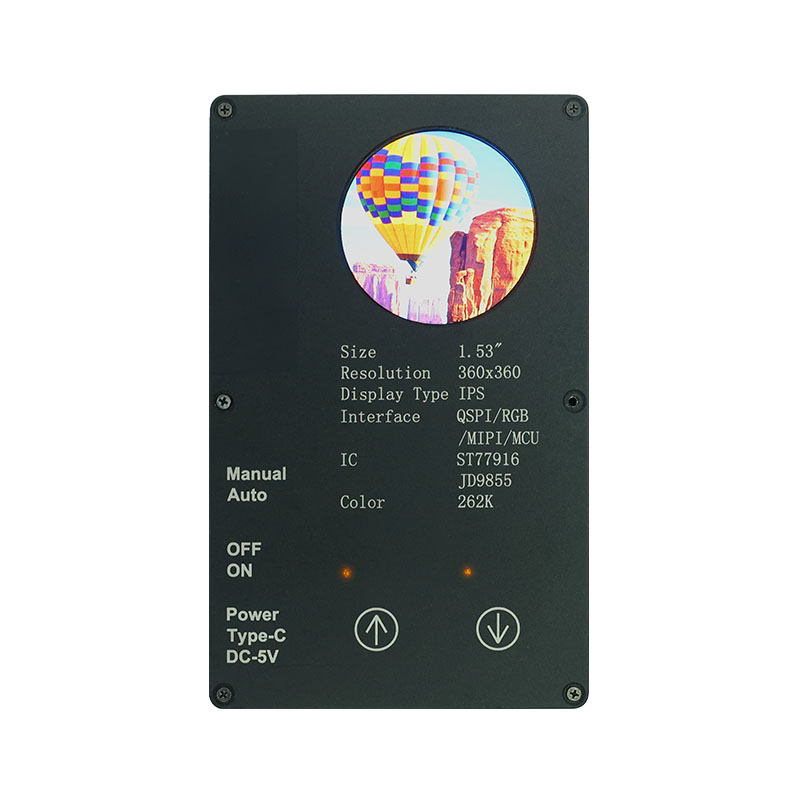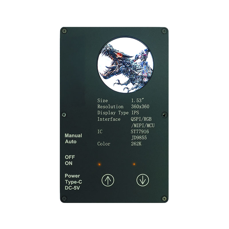 Този персонализиран дисплей разполага с висока разделителна способност 360×360, всички ъгли на видимост и висока яркост от 400 cd/m². С промишлен клас работен температурен диапазон (-20 ℃ ~ 70 ℃), той осигурява ясна и стабилна производителност в интелигентни домашни приложения като устройства за отстраняване на акари и сокоизстисквачки. Интерфейсът QSPI и ST77916 Drive IC позволяват високоскоростен трансфер на данни, докато неговият компактен размер на модула (40,46 × 41,96 × 2,16 mm) максимизира ефективността на пространството.