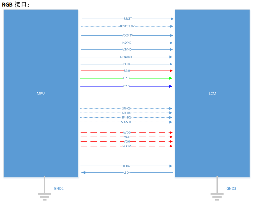 2. Ясни функционални граници: Чистият RGB интерфейс е високоскоростен „еднопосочен канал за данни на дисплея“, който не може да предава команди за инициализация или статус на четене. По този начин, в персонализирани LCD проекти, той често си сътрудничи с контролни интерфейси като SPI, които обработват инициализацията и управлението на екрана.