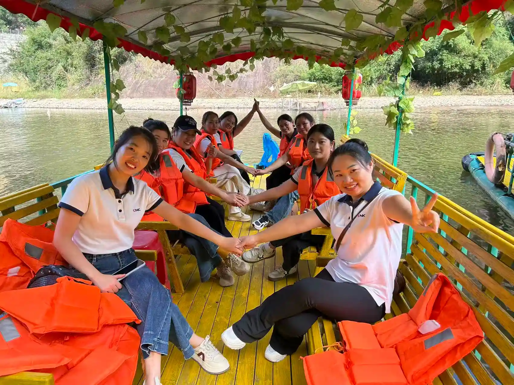 Следобедният график беше по-спокоен. Целият екип се качи на бамбукови салове за живописен круиз през десет ли зашеметяващ пейзаж. Плъзгайки се между планините Данся и изумрудените води, те се възхищаваха на живописната природа, където „зелените планини стоят като тъмни вежди и чистите води се леят като коприна“. По 3,2-километровото водно трасе всички релаксираха, потапяйки се в спокойствието и красотата на природата.